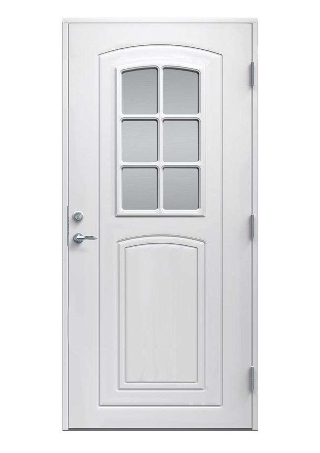 Nils är en klassisk dörr i en traditionell design med vacker dekor och stort glas som släpper in ett behagligt ljus. Ytterdörren Nils säljs exklusivt hos Elitfönster På Plats.