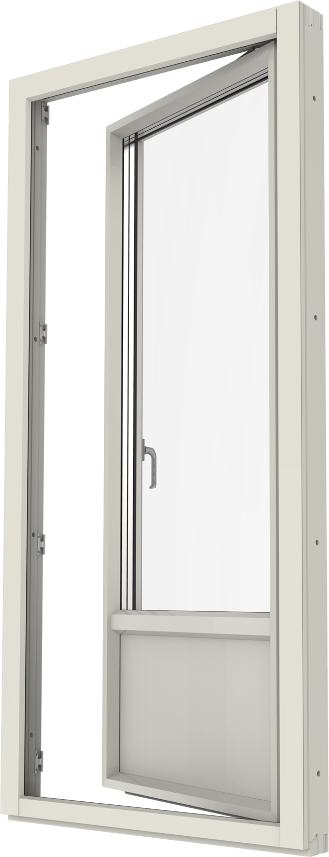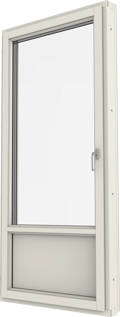 Inåtgående fönsterdörr. Finns i olika varianter, helglasad, glasad underdel eller fyllning nertill.