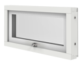 Elitfönster Original Alu 100 som överkantshängt fönster har sina gångjärn i överkant och öppnas utåt. Denna modell gör sig bra på ställen där det passar med ett brett, lågt fönster.