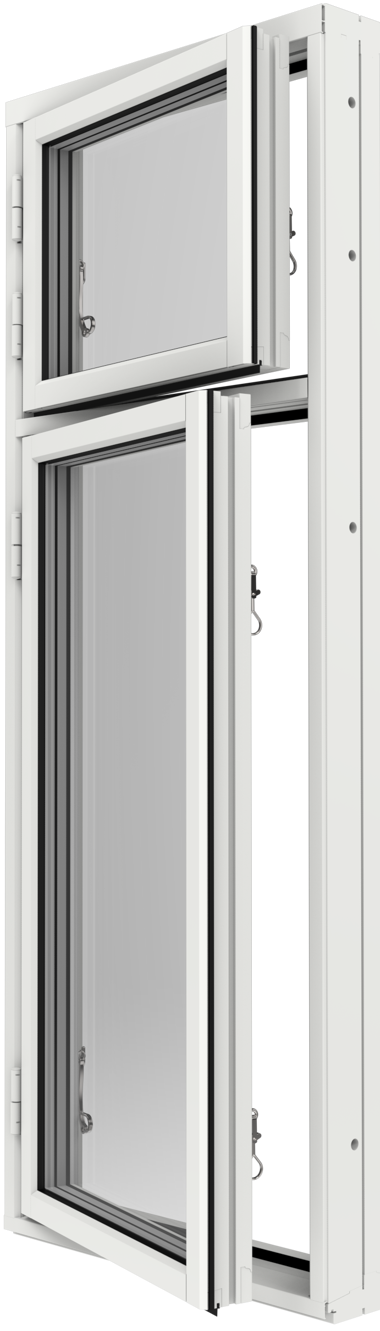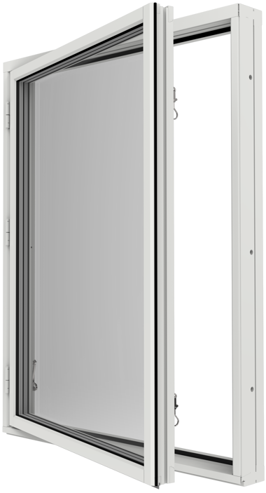 Sidohängt utåtgående fönster har gångjärn längs ena sidan på klassiskt vis.